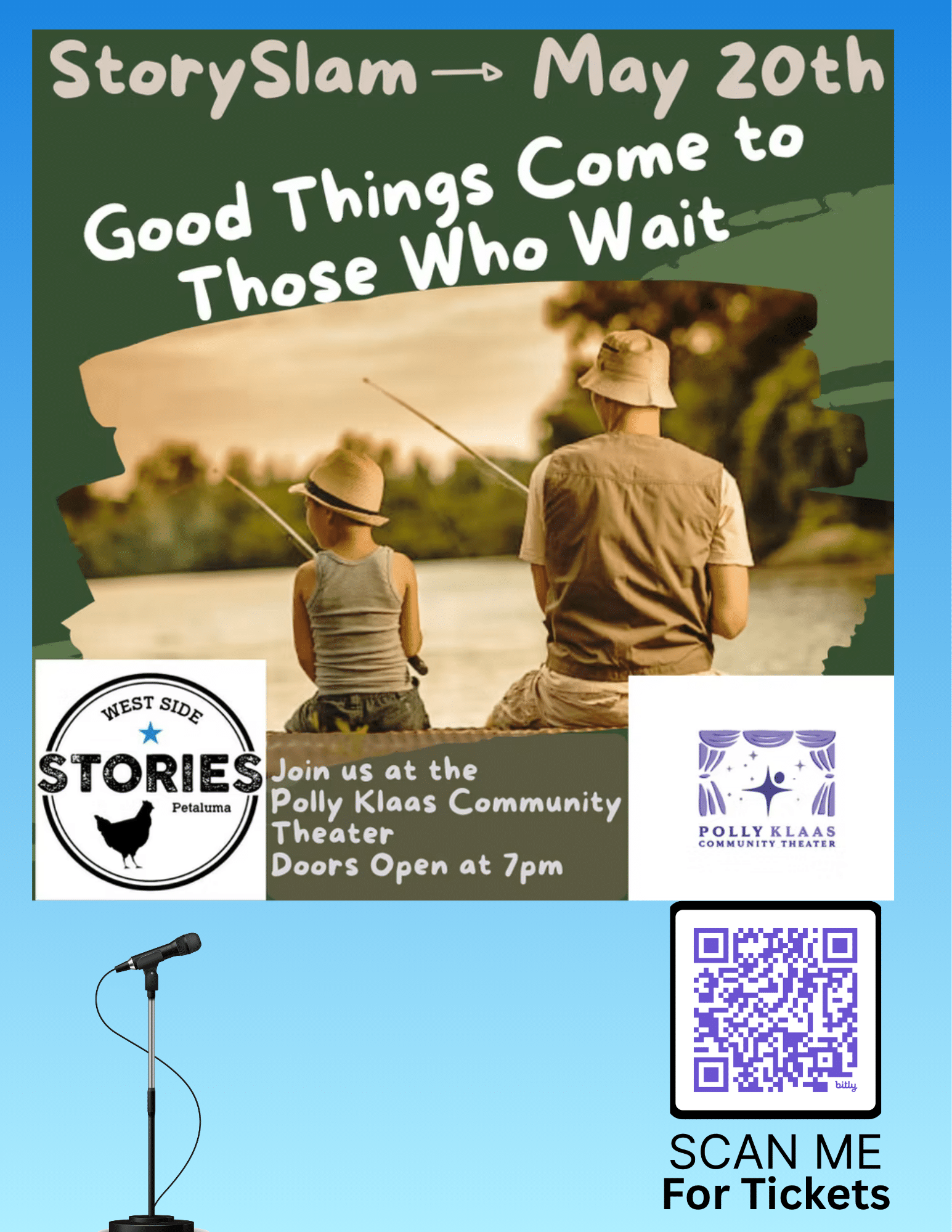 Polly Klaas Community Theater 417 Western Avenue, Petaluma, CA, United StatesEveryone has a story and now it’s your chance to tell it. Every month there is a theme, hopefully that sparks a memory for you. You put your name in a hat (an actual hat!) and 10 people’s names are drawn at random. When your name is pulled you get 5 minutes to tell your […]